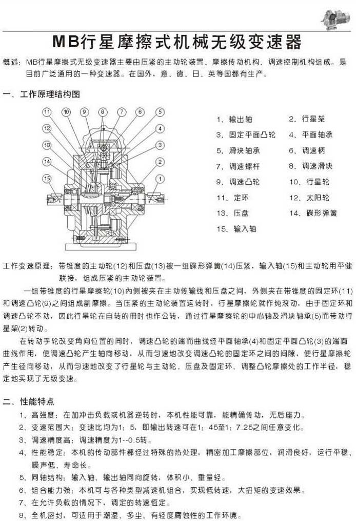 MB行星摩擦式機械無級變速器工作原理和結構圖性能特點