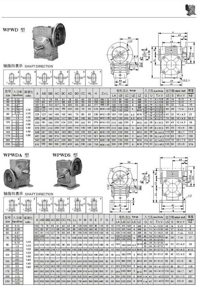 WPWD,WPWDA,WPWDS型型號(hào)參數(shù)圖表