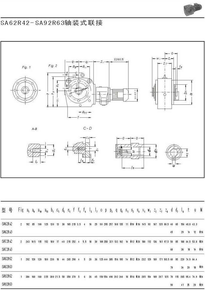 SA62R42-SA96R63軸裝形式聯結參數圖表
