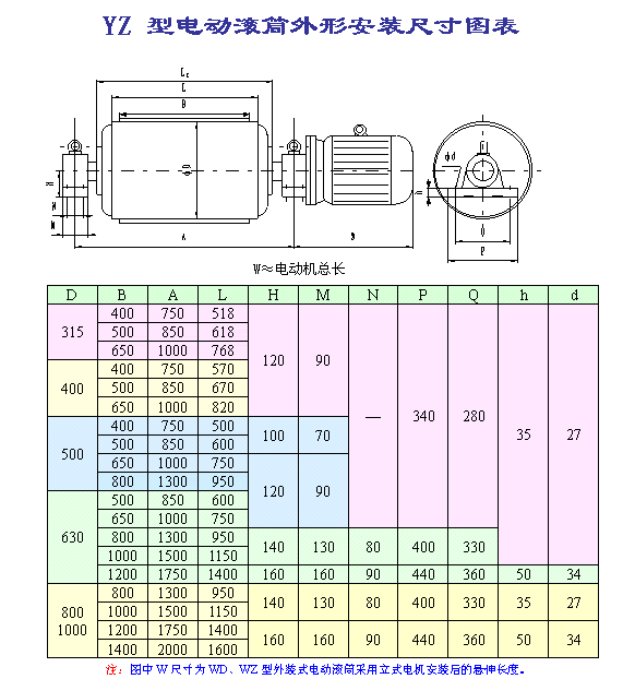 (1)因目前外裝式電動滾筒尚未制定相關(guān)行業(yè)標(biāo)準(zhǔn),本廠將該型號電動滾筒首位代號用W(“外裝”的首位漢語拼音)表示。外裝式電動滾筒外置電機可分為立式電機和臥式電機,用戶訂購時請加以說明;